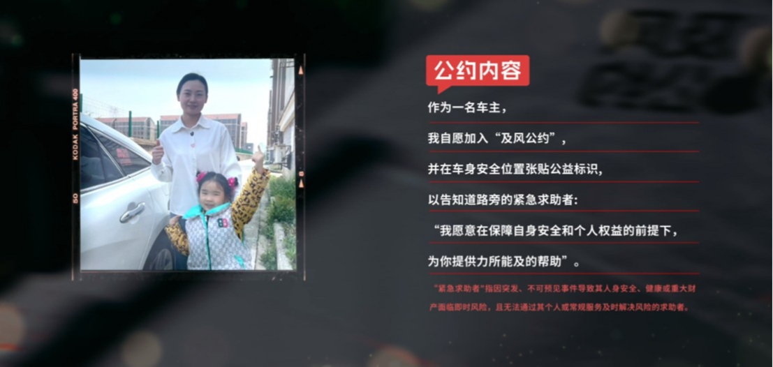 东风汽车“及风公约”核心理念源自“助人为乐”的雷锋精神,号召爱心车主在确保自身安全的前提下,为道路上遭遇紧急状况且无法自行解决问题的求助者伸出援手。为彰显这一理念,公约设计了专属的爱心标识,巧妙融合了风字型与爱心图案,将标识张贴在车身上,既能让求助者看到希望,也表明了车主愿意提供帮助的心意。