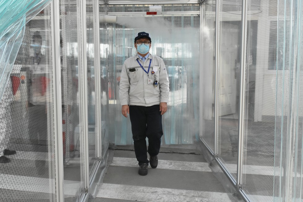 厂区入口设消毒通道 龙霏/摄