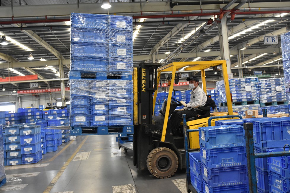 物流仓库内有序开展工作 龙霏/摄