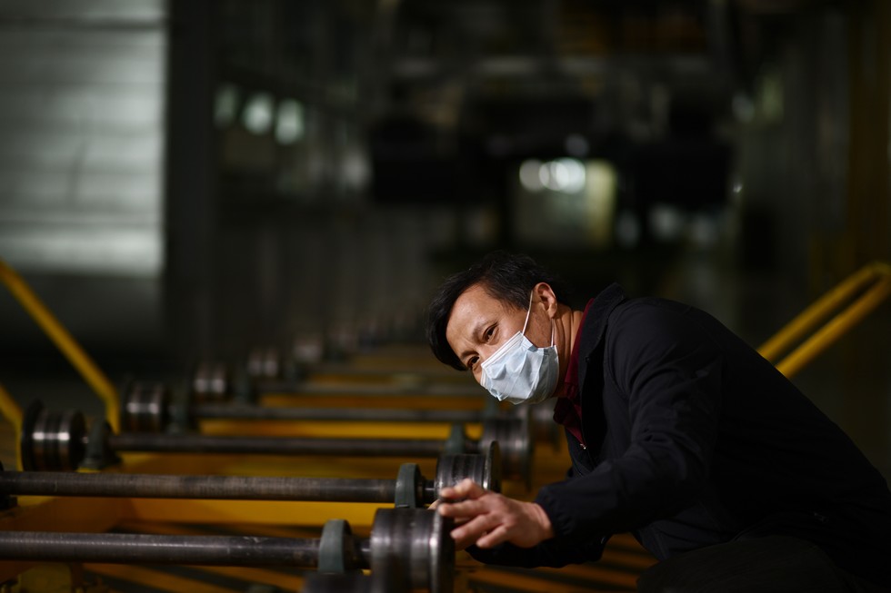 经过一周时间的设计、安装、试验,一个电动移行机代替了原来纯手动作业。4月22日,记者在现场看到,一台防护车身的转运,只需1人按动操作按钮,就可以实现全程转运。