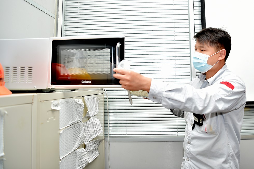 为了让员工吃好,车架厂大部分的班组都配备了微波炉