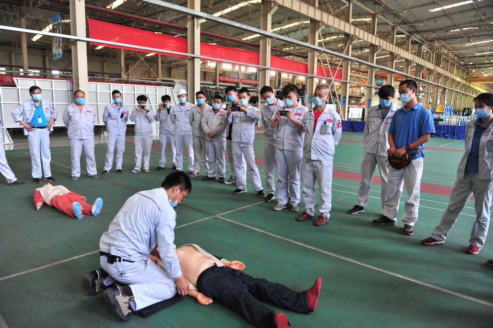 5月27日,东风汽车股份轻型商用车分公司举行现场急救员培训。相关专家详细讲解了心脏骤停的现场救护方法,示范了胸外心脏按压的方法,口对口人工呼吸的方法。学员们在专家的指导下,进行了心肺复苏实操演练,以提高自己的紧急救援能力。(特约记者 张明远 文/图)