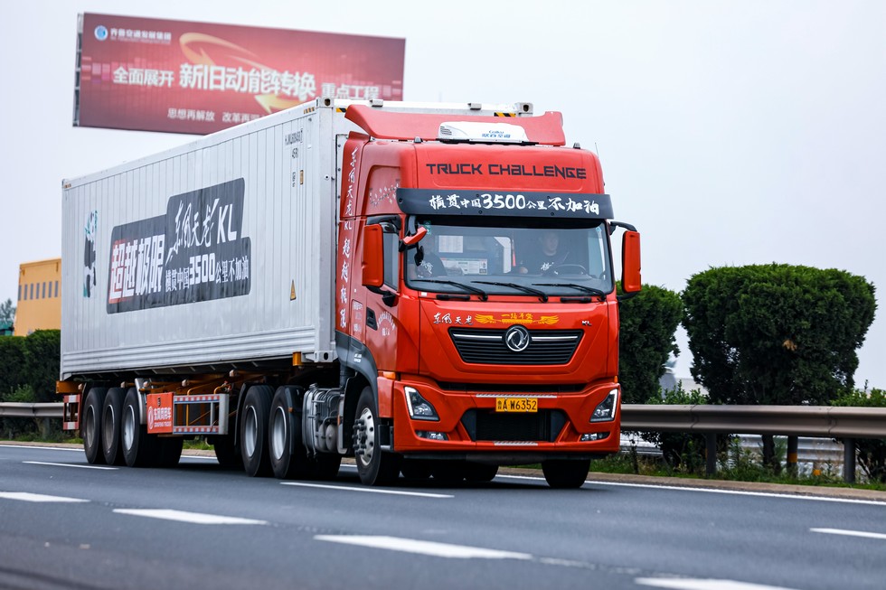 6月16日上午,一辆满油(双油箱共1050L油)满载(49吨货物)的东风天龙KL,从山东临沂出发,驶向目的地新疆乌鲁木齐。该段行程全程超3500公里,东风天龙KL将在全程不加油的条件下完成行程。据悉,2018年,东风天龙KL曾在满载状态下,成功完成以一箱油行驶3500公里的挑战,创造了28.2L/百公里的油耗纪录。此次挑战,东风天龙KL将经历平原、丘陵、高原、戈壁、沙漠等多种环境,难度极大,如果成功,将再次刷新国产商用车续航能力的纪录。(张斯晨/文 东风商用车供图)
