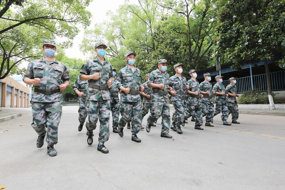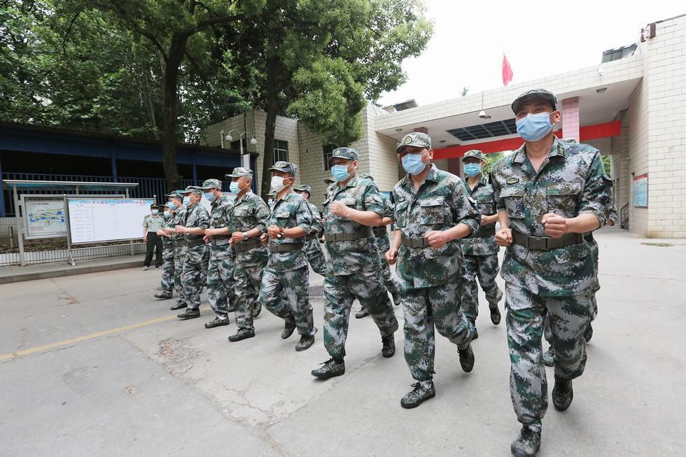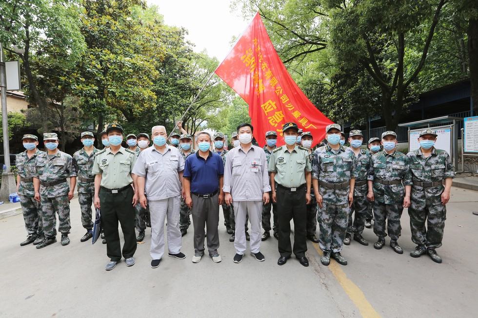 组图为刃量具厂“消防救援”民兵应急分队接受东风公司武装部的整队点验