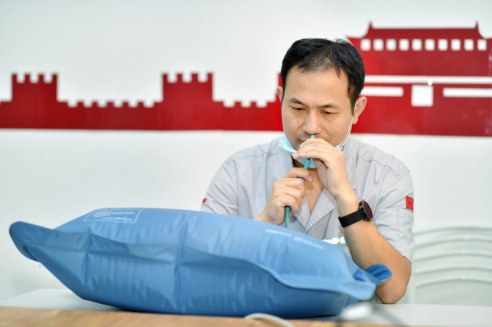 今年开始,动力总成事业部每个班组标配一个氧气袋,一次性可吸氧30分钟。“动力总成事业部员工平均年龄达到了48岁,加上今年生产任务重,我们特地配备了氧气袋,将安全防护落实到位。”动力总成事业部工会副主席陈世慧说。