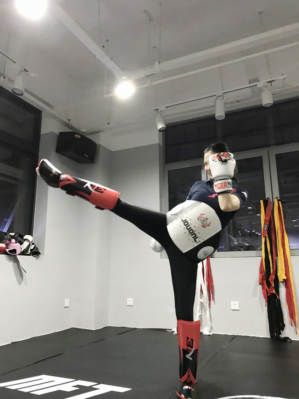 “这一张是我在健身房练拳击,有时候压力大或者心情不好,去打拳能够痛快宣泄……”