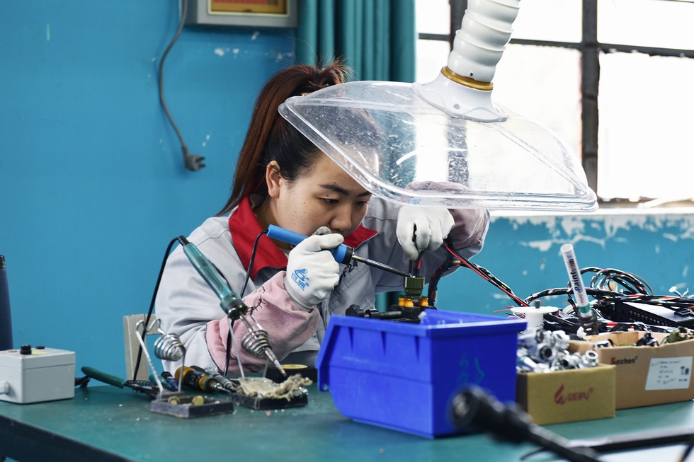 走进电器事业部,线束装配图板前,女工们来回穿梭,手中握着彩色的线束,固定在对应的点位上。“3月,越野车线束排产达到了980台,为保证产能,我们对图板支架做了改善,将金属支架更换成塑料卡扣,消除了磕碰安全隐患,避免了电线窜位,员工操作起来更快捷可靠。过去装配一套线束需要20分钟,现在15分钟就完成了。在提高工作效率的同时,还提高了产品质量。”电器事业部线束二班班长李丽介绍。