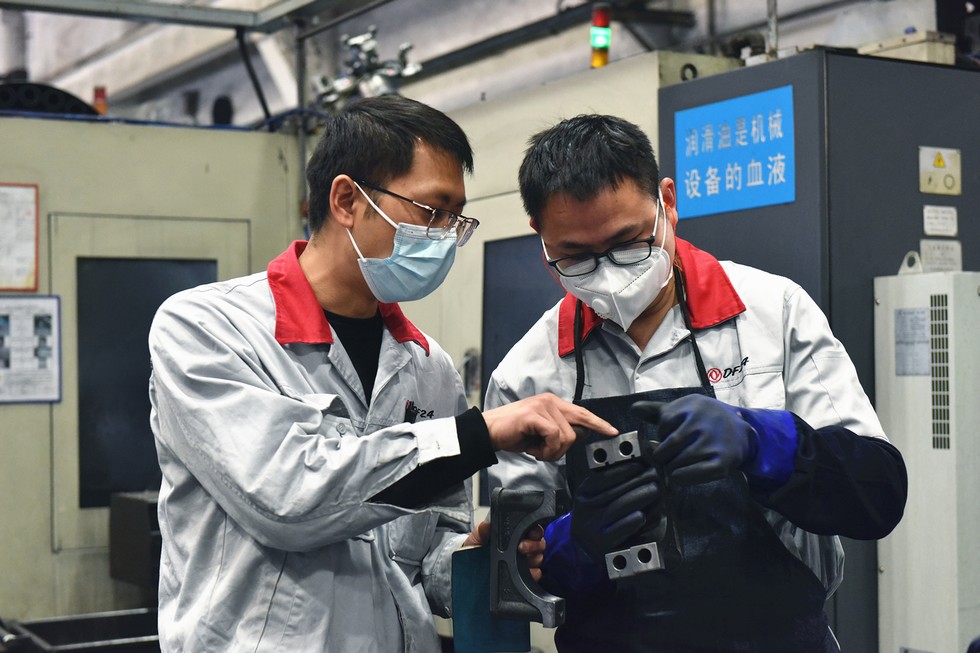(记者 于文欣 通讯员 熊文山 文/图)3月4日,早上7时45分,东风动力零部件有限公司发动机事业部四车间班长胡慧华准时召开班前会,向班组成员下达一天的生产任务。