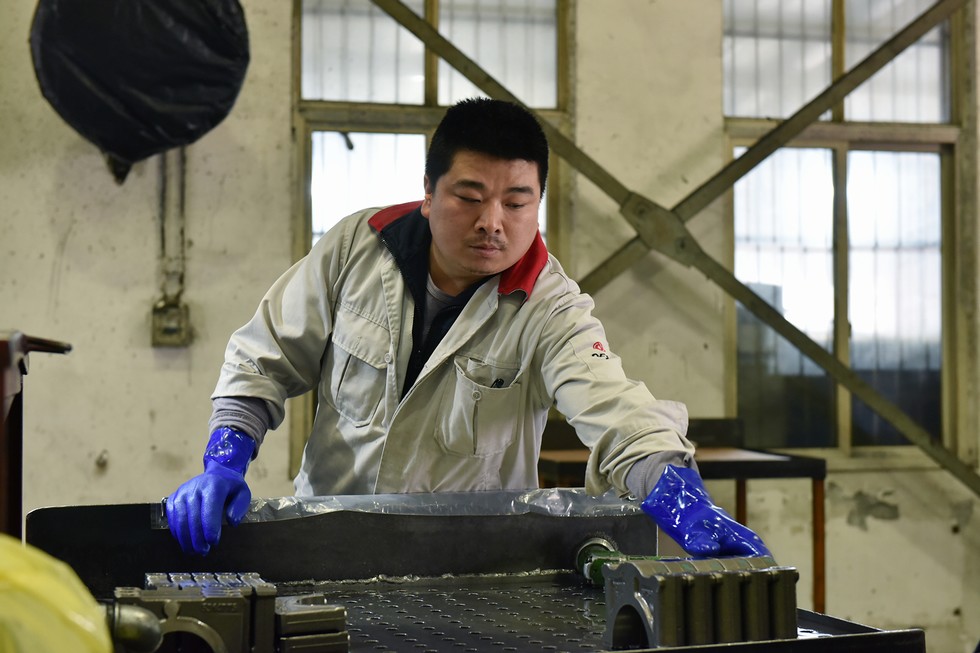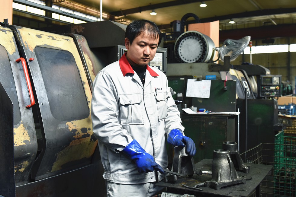 此前,由于四车间产能不足,事业部将部分国六主轴承盖协调到三车间生产,并由试制车间制作工装。3月3日下午,胡慧华在四车间的工作接近尾声,收到任务后,便立刻赶往三车间调试国六主轴承盖生产线。经过几个小时的忙碌,晚上9点半,设备能够正常运转产出合格的产品。第二天,三车间调试好的设备开足马力,一件件国六主轴承盖顺利下线。