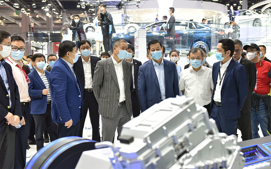 19日,公司董事长、党委书记竺延风也前往兄弟企业及造车“新势力”展台,进行参观交流。