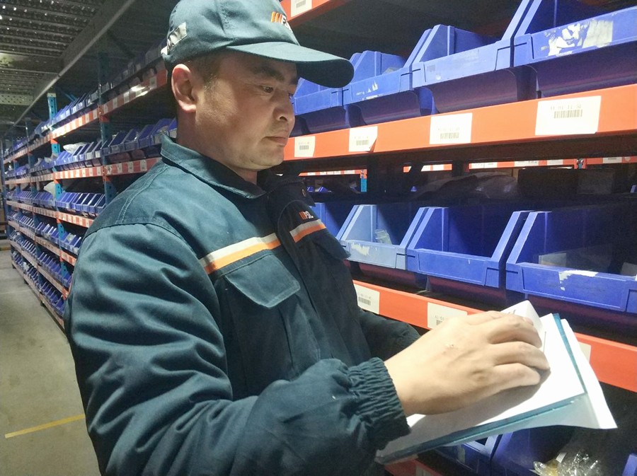 彼时的乌鲁木齐物流中心,尚处于“粗放式”管理状态,备件摆放杂乱无章,生产效率低下,人员紧缺,但订单需求却在飞速上涨。面对这些困境,初来乍到的严家军当机立断投入仓库布局和存储标准化行动中。他重新设定库位库区,将原有的4500个库位增至6300个,确保一料一位,备货时间缩短了一半。