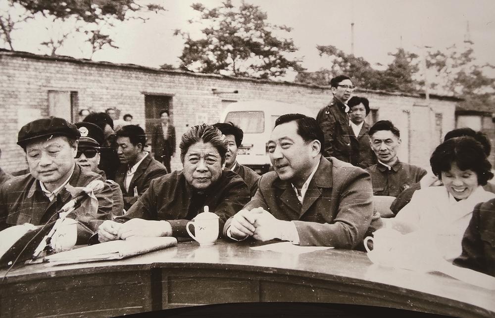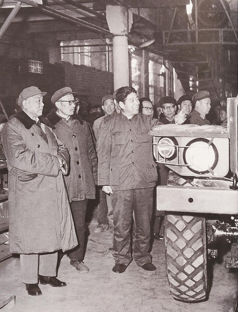 ■1978年1月10日,饶斌(前左三)陪同国家副主席李先念(前左一)视察二汽军车生产线