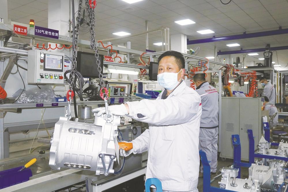 4月6日,湖北襄阳,东风电驱动系统有限公司新能源车间内,电机总成装配线、自动定子生产线、转子生产线三条生产线火力全开,一件件产品陆续从自动化生产线上下线。