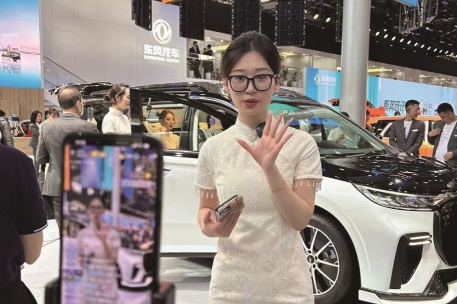线上直播越来越成为车企提升品牌影响力的重要方式。4月24日,东风岚图22名主播在北京现身2024岚图汽车春季技术沟通会,当天直播总曝光量70.76万,累计人流量13.5万,收集线索173条。记者了解到,北京车展期间,岚图“直播天团”将连续直播10天,开设研发、技术、用户等专场直播助力营销。4月25日-26日,“直播天团”在北京车展收获曝光量82万,收集线索789条。图为岚图主播在北京车展直播。