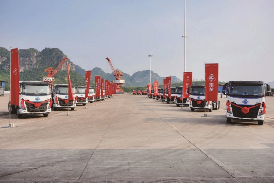 9月8日,以“共建重卡超充生态,共赢全电物流机遇”为主题的崇左濑湍港新能源重卡路线启动会在广西崇左举行。东风柳汽作为新能源运输车辆供应方,向崇左城建集团正式交付80台乘龙H5纯电牵引车,为打通中越“公水联运”注入新动力。在当日启动的项目中,东风柳汽与崇左城建集团旗下崇左交投、崇左城建物流等合作伙伴紧密协作,结合华为超充技术,构建“新能源重卡+超充网络+多式联运”的全电物流体系。