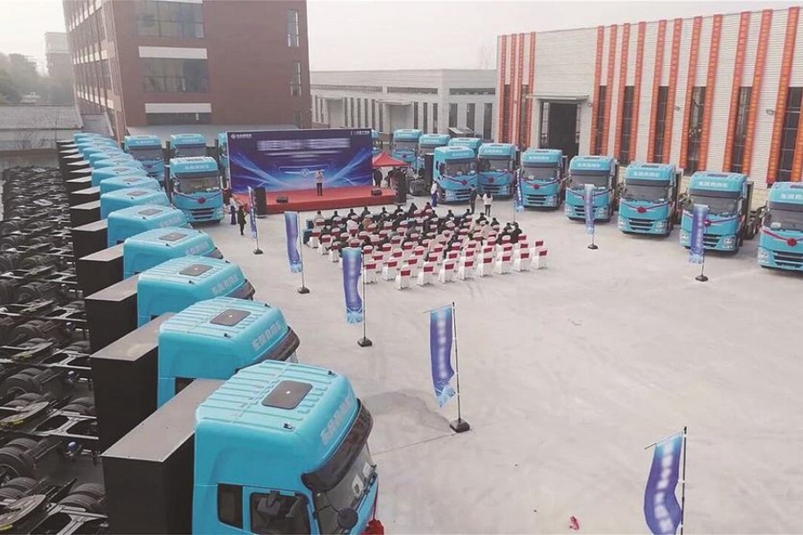 1月5日,东风商用车与合作伙伴在安徽凤阳举行200辆新能源车辆战略签约暨首批车辆交付仪式,首批50辆东风新能源牵引车正式交付。此次交付的东风新能源牵引车,是东风商用车基于对资源运输市场深度洞察打造的“节能标杆”,集成多项领先技术,用电效率较主流商品高3%,整车轻量化行业领先,舒适性出色。