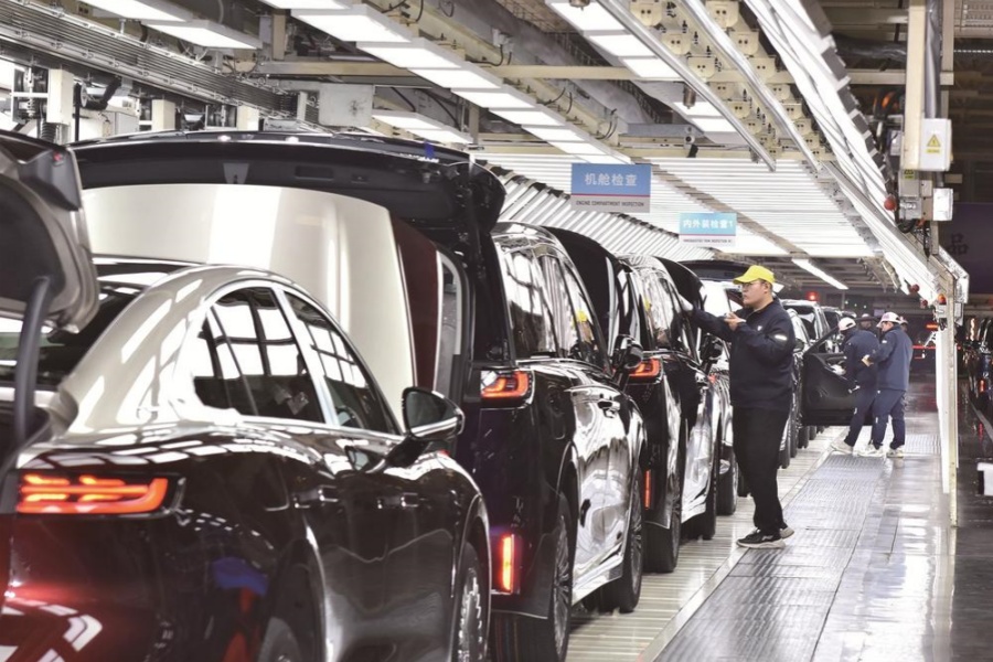 1月16日,岚图黄金工厂总装车间内,一台台车身沿产线匀速前行,质检合格的新车在待发区整齐列队,等待运输。