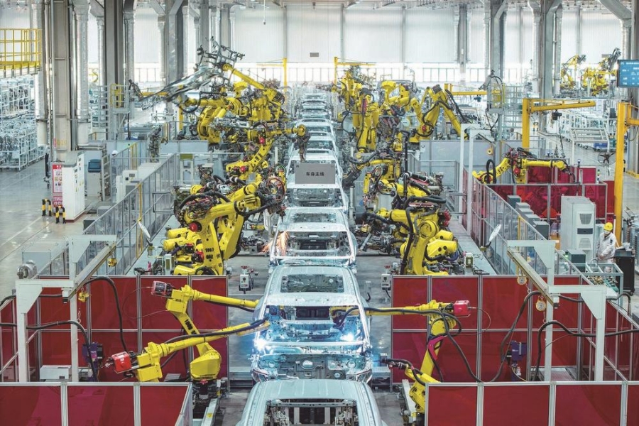 智能化是实现高生产节拍与产品高一致性的关键。“我们的焊钳已开启自适应焊接模式,可根据板件状态自动调节电流与压力,既保证焊接质量,也降低能耗和飞溅。”朱虎云介绍,搭载视觉系统的机器人能精准完成涂胶、搬运与质量检查;2025年,焊装车间通过增加智能设备,进一步提升了涂胶自动化率,工作人员只需负责上下料与监控,为生产持续提效释放了空间。