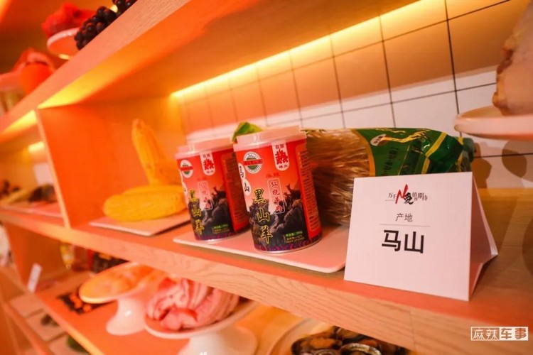 在这次直播中,有一面家宴食材墙让人印象深刻,来自全国各地的特色食材琳琅满目,其中,更有来自广西马山县的特产。