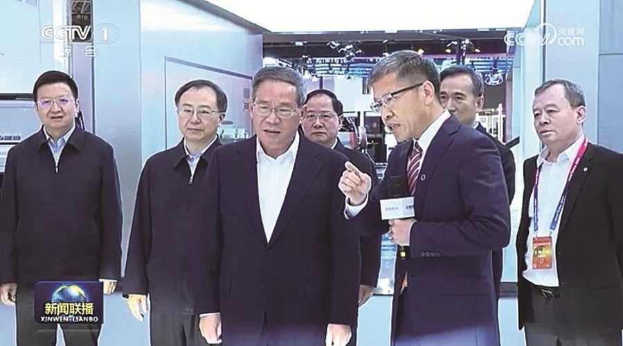 李强来到东风、比亚迪、智己、极越、宝马、吉利、小米、赛力斯、小鹏等品牌展区,察看参展车型和技术展示。